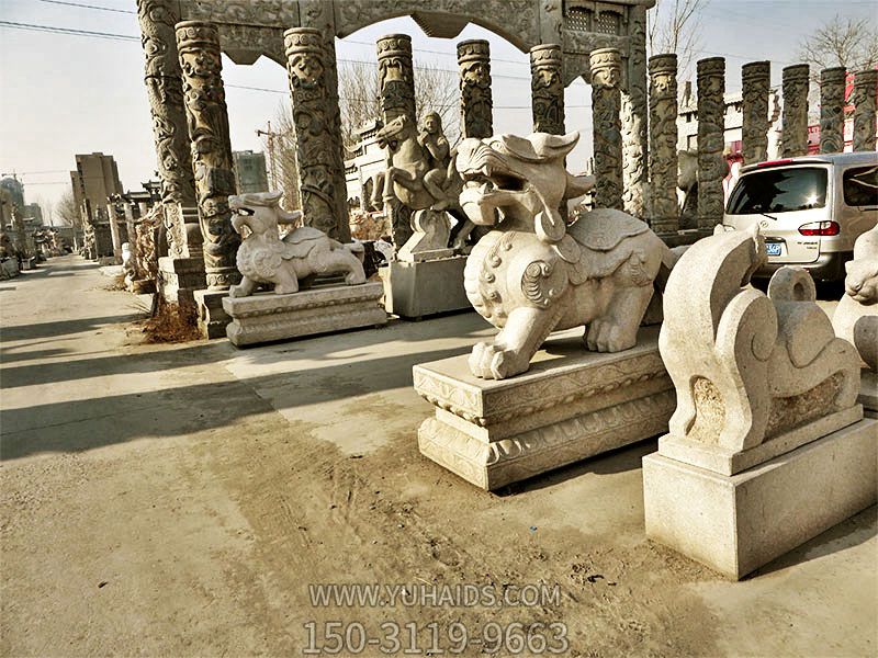 戶外廣場(chǎng)大理石石雕貔貅雕塑.詳細(xì)說明