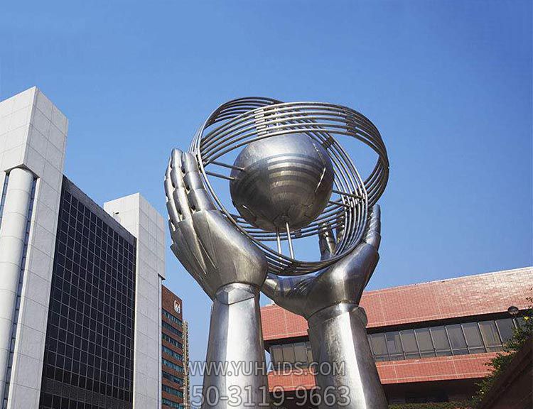 企業(yè)小區(qū)手托球切面不銹鋼手型雕塑