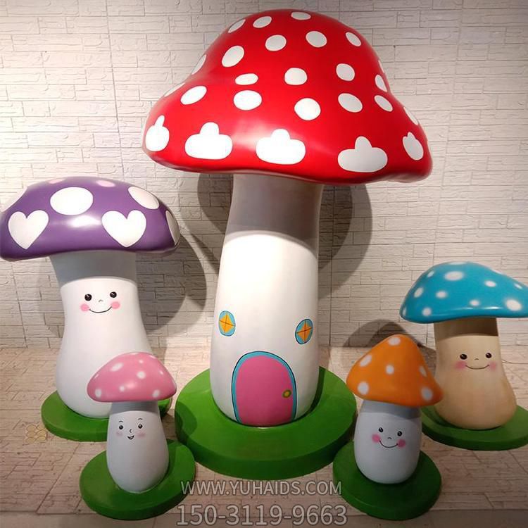 公園草地擺放玻璃鋼卡通彩繪小蘑菇雕塑景觀擺件.詳細說明