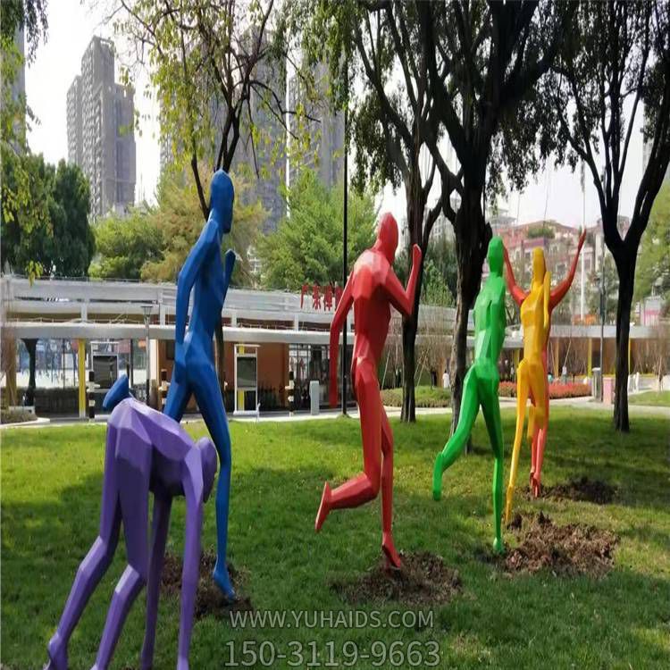 玻璃鋼彩繪戶外園林跑步的抽象人物雕塑.圖片展示