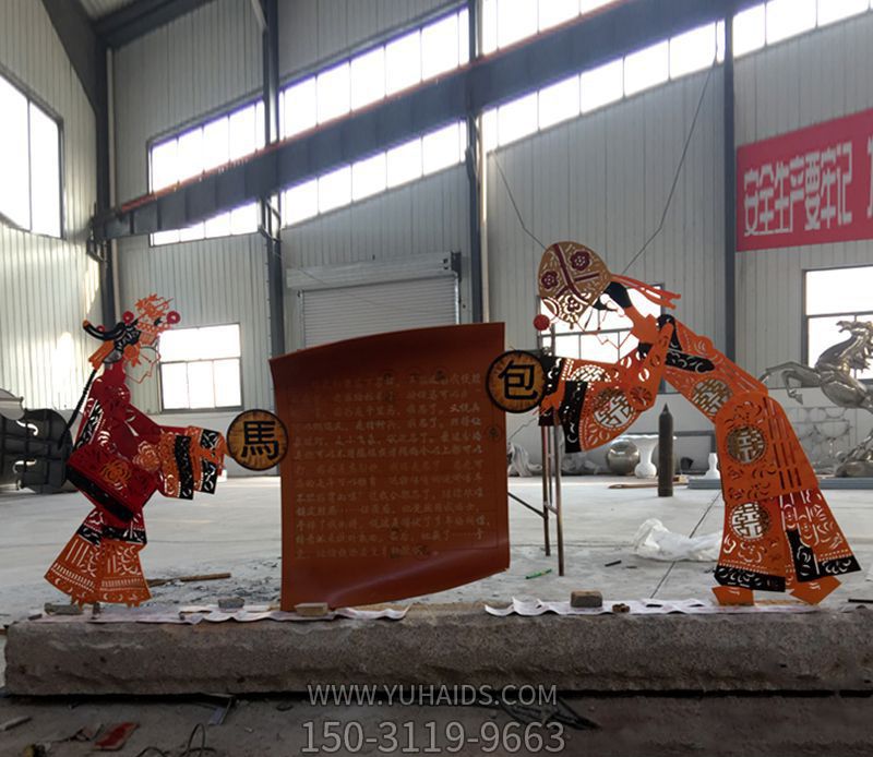 景區(qū)廣場(chǎng)不銹鋼彩繪皮影戲雕塑.圖片展示