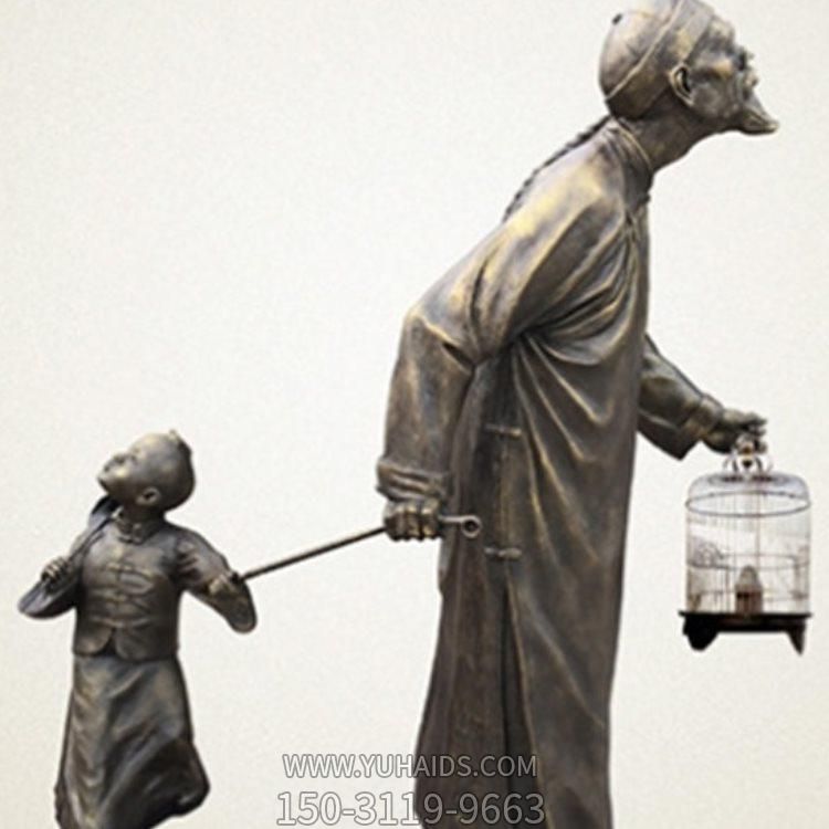 | 產(chǎn)品標(biāo)題 | 景觀戶外玻璃鋼仿銅遛鳥的人物景觀雕塑 |