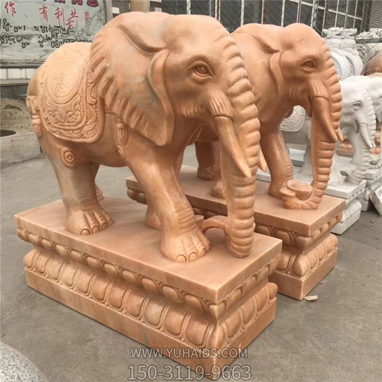 酒店企業(yè)晚霞紅石雕鎮(zhèn)宅招財(cái)大象雕塑.詳細(xì)說(shuō)明
