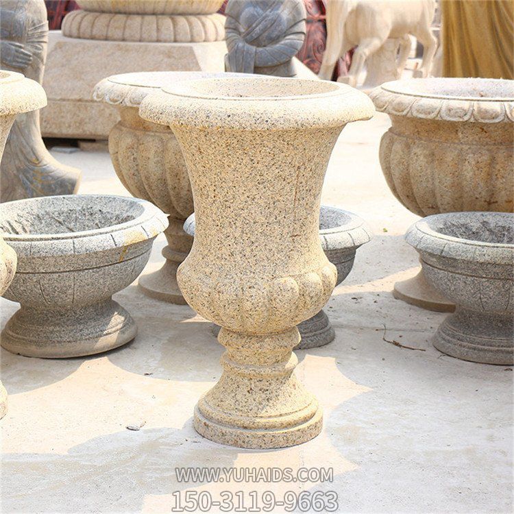 黃銹巖雕刻制作歐式花缽小區(qū)廣場花盆擺件雕塑.詳細說明