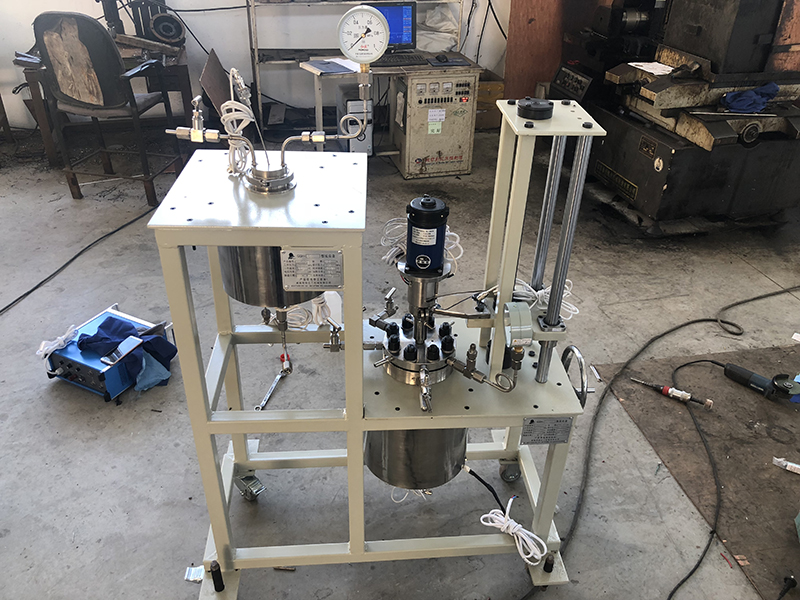我公司為上海地區(qū)客戶制作的1L成套反應(yīng)釜。設(shè)備由兩臺(tái)反應(yīng)釜組成,一臺(tái)為無攪拌快開裝置,第二臺(tái)采用磁力驅(qū)動(dòng)攪拌器配錨式+推進(jìn)攪拌槳葉,設(shè)計(jì)溫度300℃,設(shè)計(jì)壓力為12.5MPa。制造材質(zhì)為哈氏合金C-276。攪拌轉(zhuǎn)速達(dá)1000r/min。控制系統(tǒng)配備壓力傳感器及上微機(jī)軟件。
